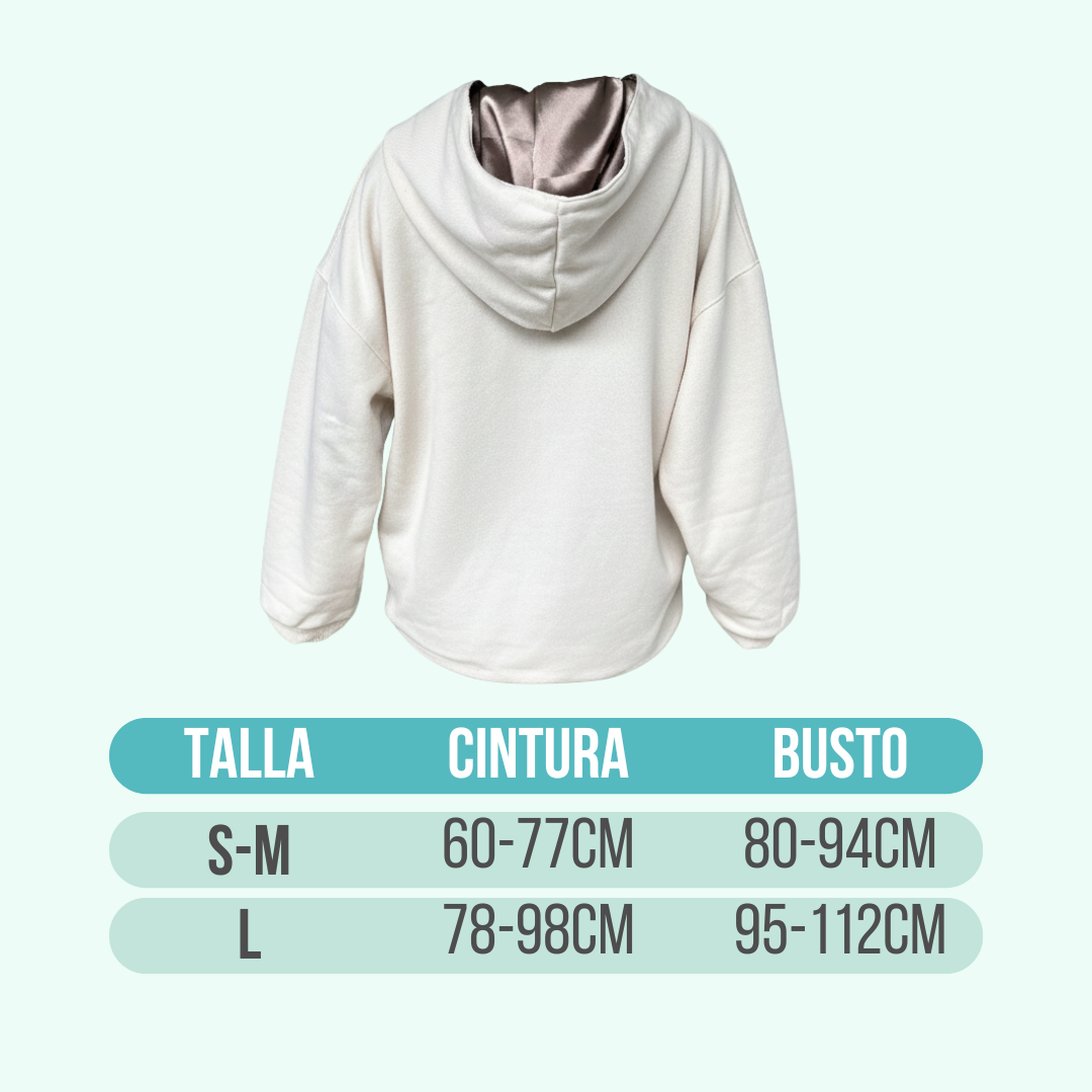 Este hoodie es perfecto para estar super cómoda pero sin desbaratar tus rizos ya que su capota es hecha en satín de alta calidad que será muy delicado con tu pelo.