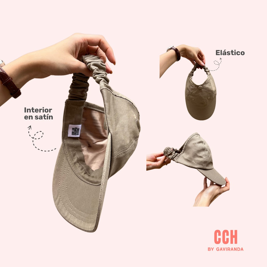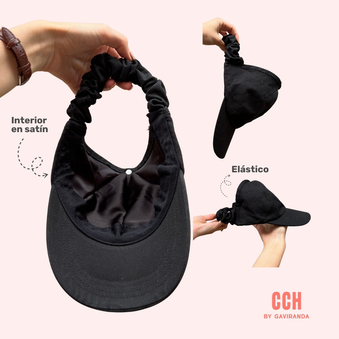 * Diseño innovador: No es una gorra tradicional. Tiene un corte especial en la parte trasera que deja espacio para que puedas recoger tu cabello, mostrar tus rizos o hacer peinados creativos con total comodidad.